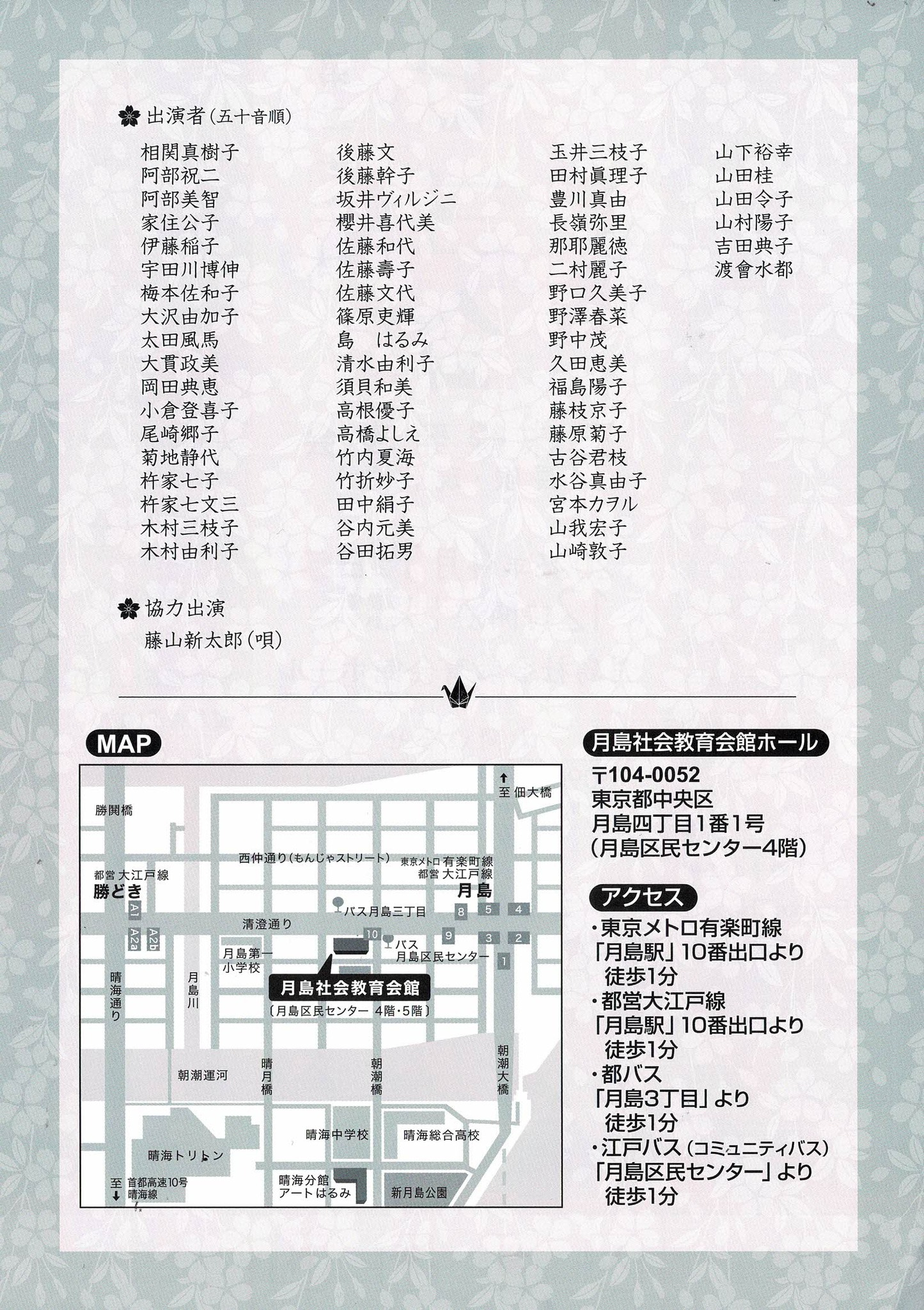 場所: 月島社会教育会館ホール地図を見る